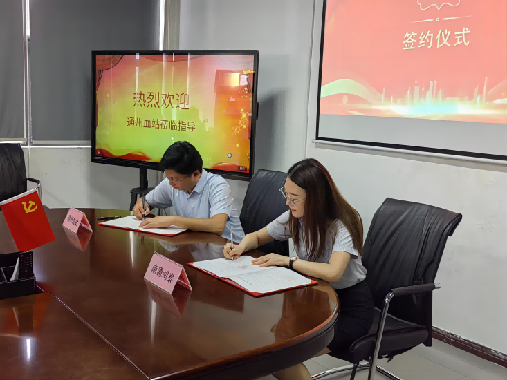 2023年9月4日,廣東鴻泰南通精機科技有限公司與南通市中心血站通州分站在公司會議室啟動簽約儀式。通州區血站站長黨支部書記陸建新、副站長朱曉瑩、副站長陳艷、血源科科長王新明,南通鴻泰行政總監季院華、管理部主任亢玲燕、工會工作負責人瞿佳鈺共同出席了簽約儀式。