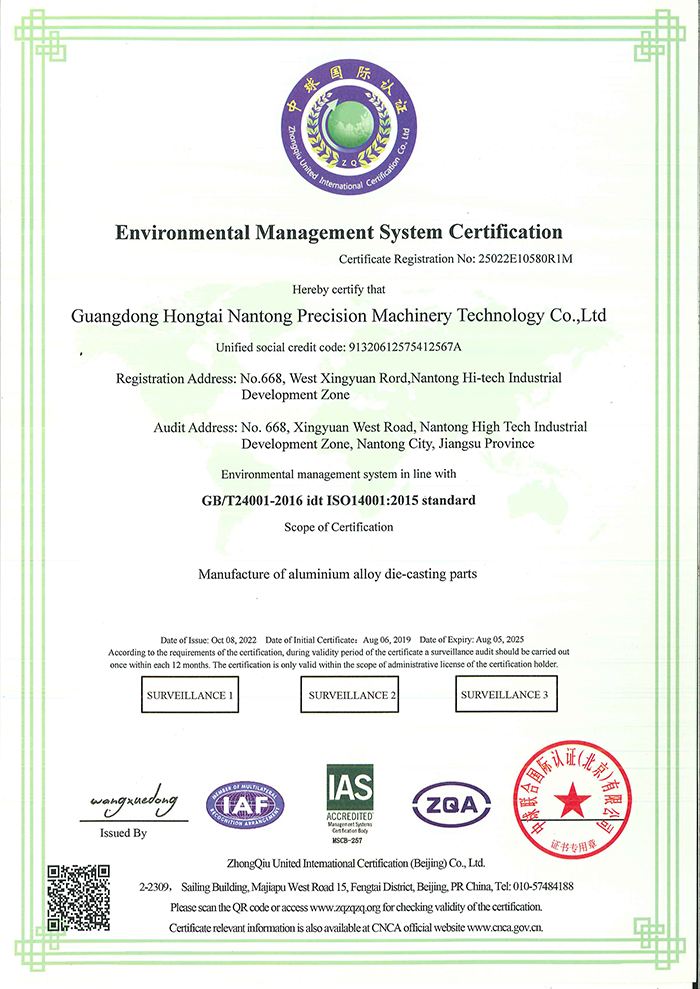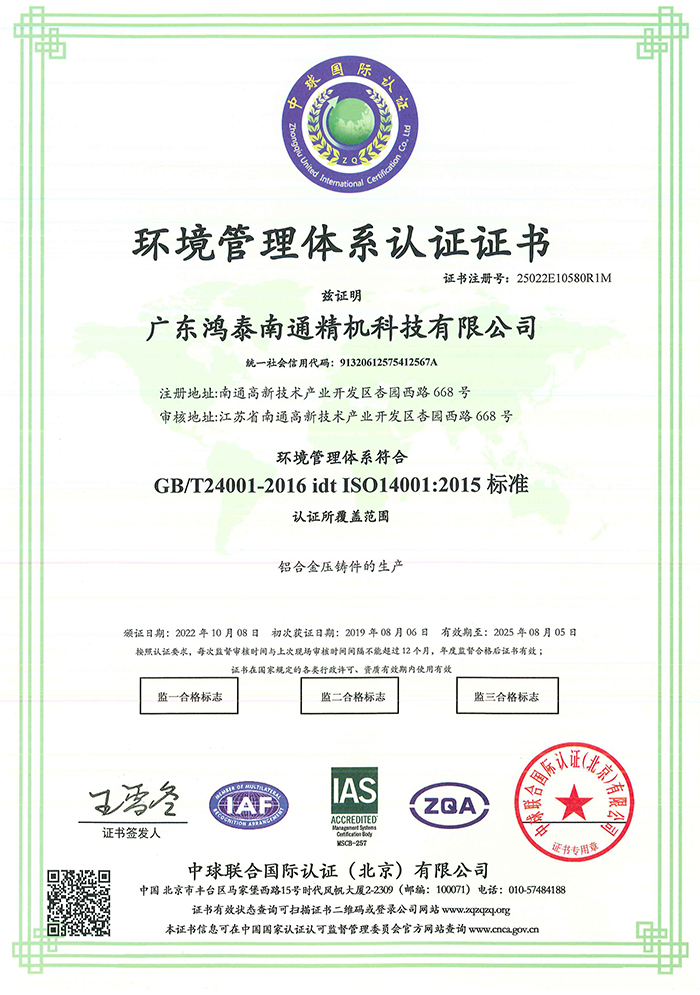 ISO14001認證證書